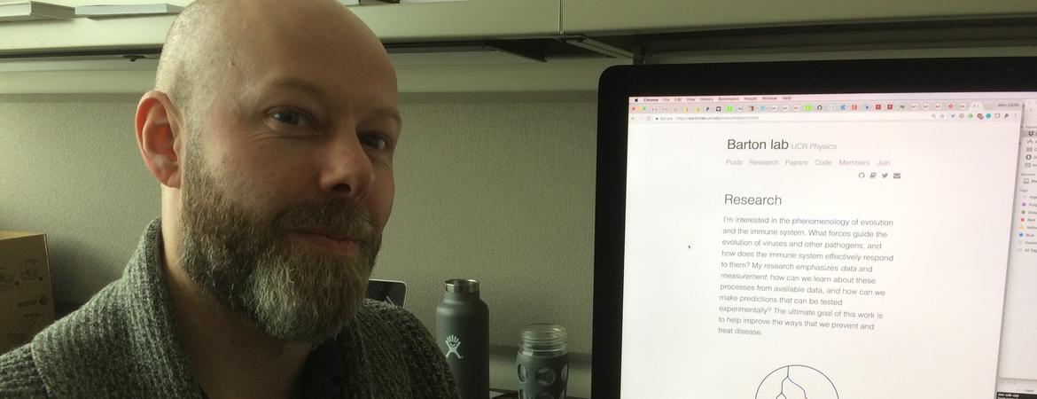 For several years, physicist John Barton at the University of California, Riverside, has been working on developing models to understand and predict how pathogens, such as HIV, evolve. This research pursuit has just received support from the National Institutes of Health—the first grant from the institutes to the UC Riverside Department of Physics and Astronomy.